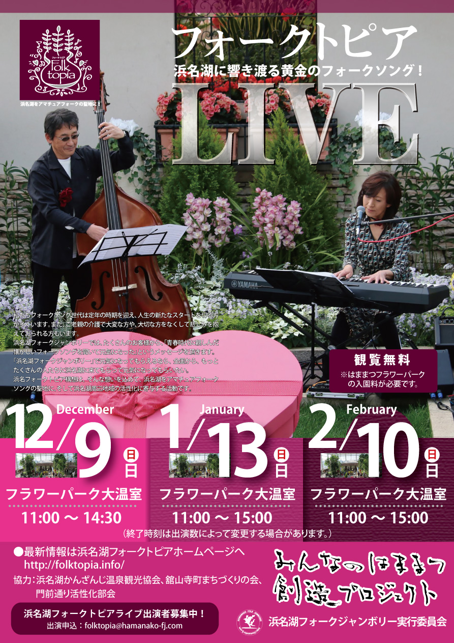 「浜名湖フォークトピア」2018年12月~2019年2月(2018冬版)のフライヤーが完成しました。